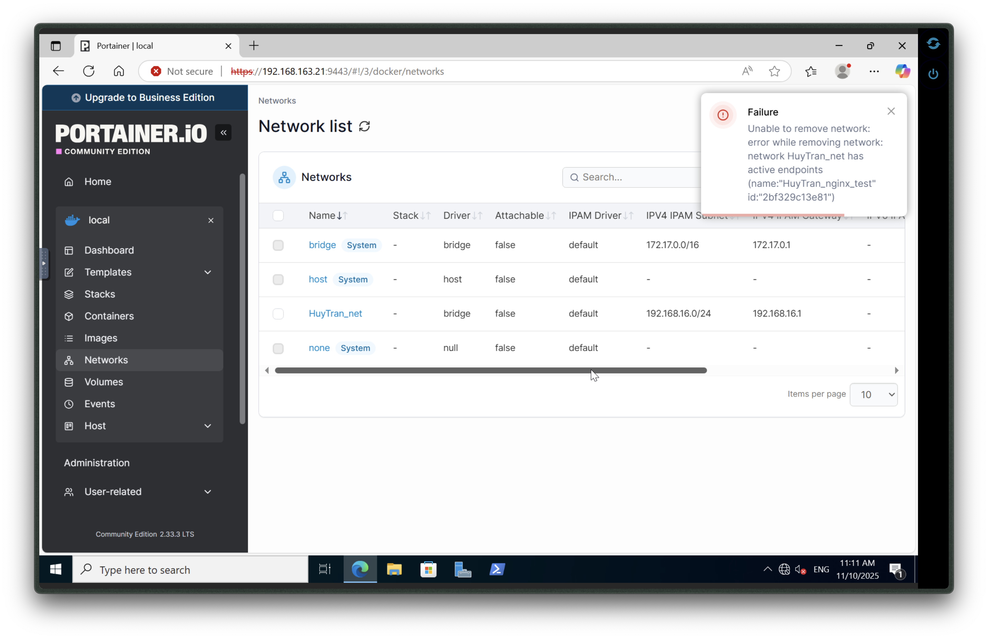 Networking in Portainer