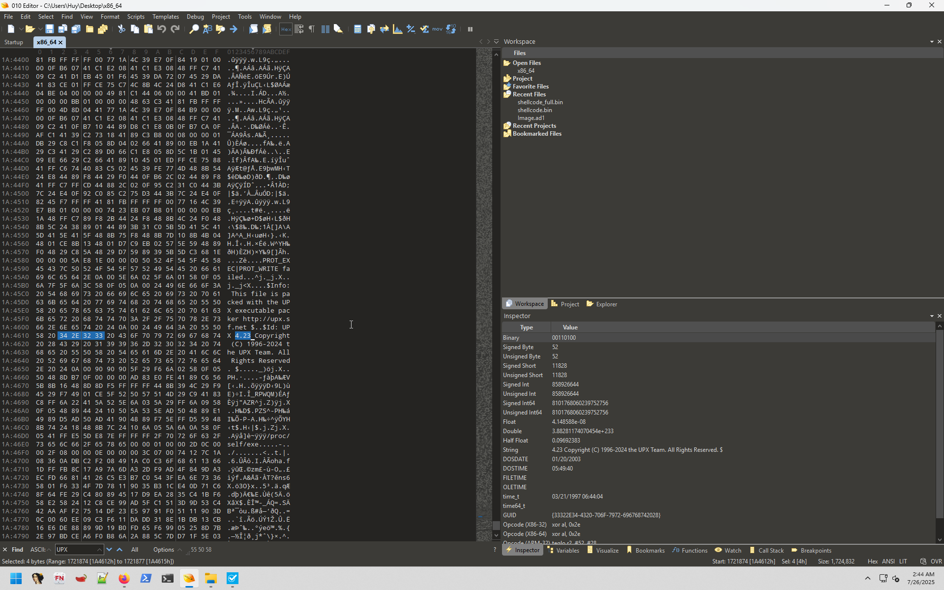 Turns out, the application is using UPX packer, as the signature ASCII texts highlighted above. Further investigation led to me its version.
