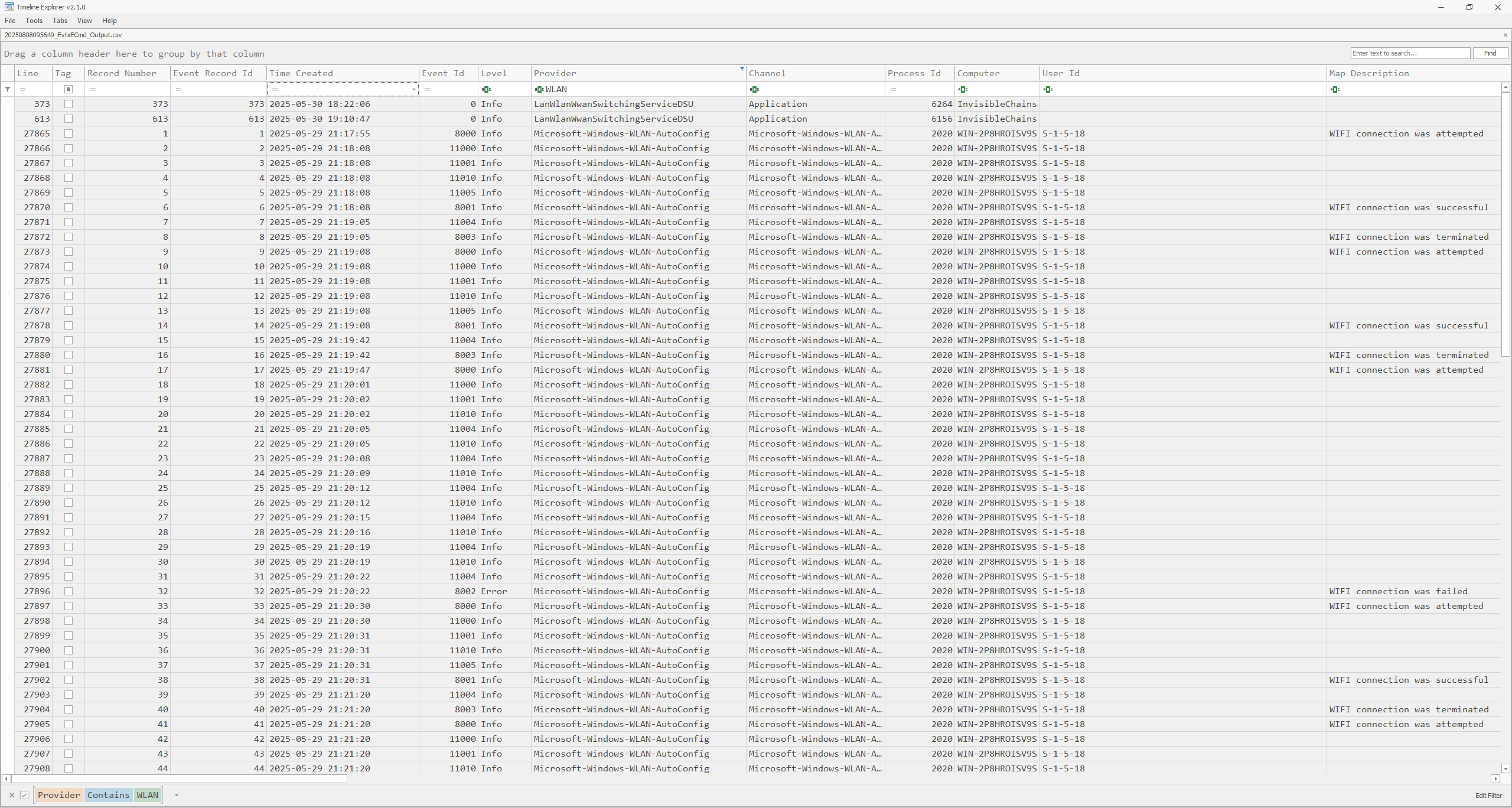 Given an artifact from KAPE output, my task is to find and analyze anything related to Wi-Fi.