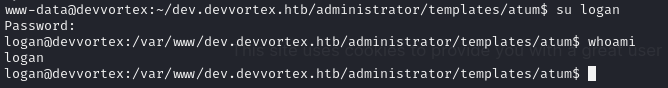 hashcat -m 3200 -a 0 hash ~/Data/tools/wordlists/famous/rockyou.txtWith the cracked password, I can switch to the logan user and get the user flag.