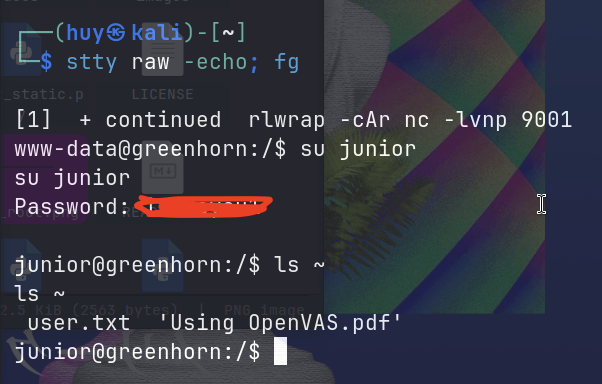 stty raw -echo; fgHowever this user is not the one containing the user flag. After a while of enumeration, I found out that it is using the same password for the admin panel.