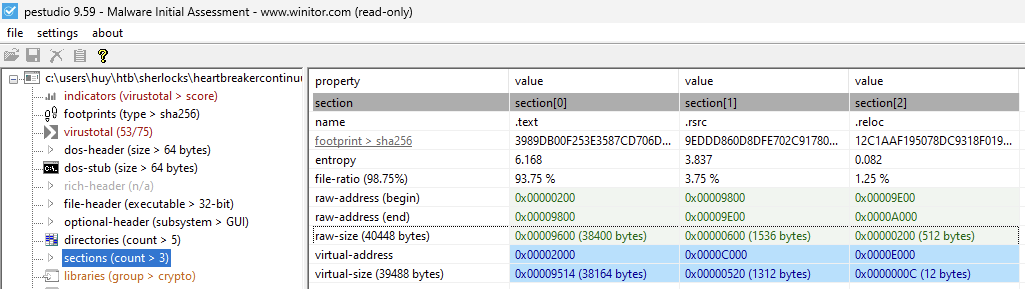 Therefore, it acts as a unique identifier for the file. We can get it by using the sha256sum command or by PEStudio.