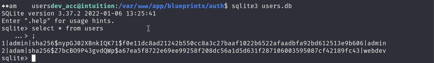 From the users table, I can see that there are 2 users: root and adam, with the hashed password. I tried to crack the password of root using hashcat but could not find the password. So I tried to crack the password of adam and successfully found the password.