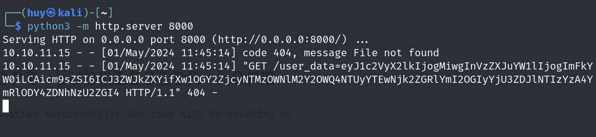 I tried the following payload with python listener and got the cookie value of web_dev role.