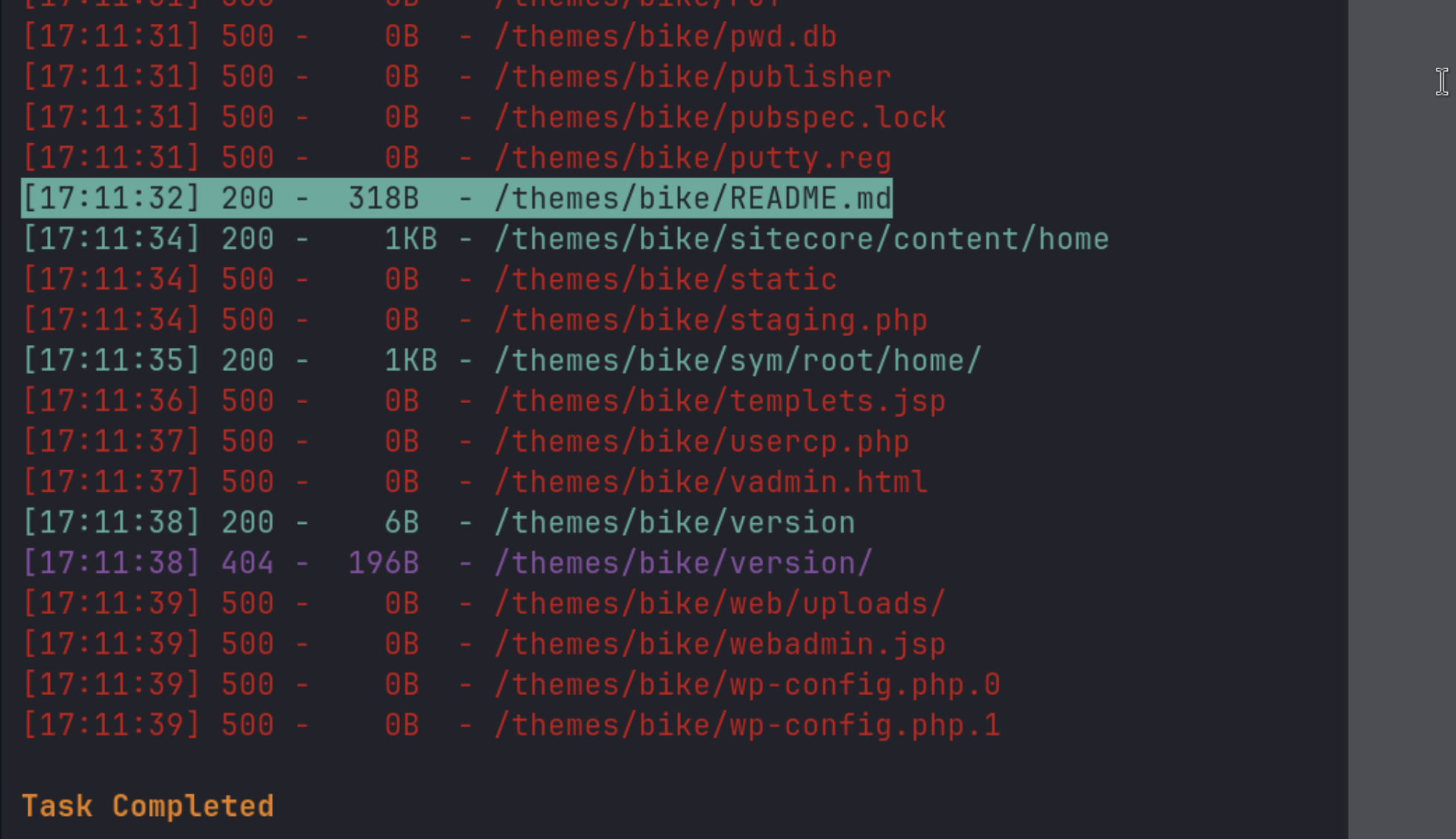 It discovered /themes/bike/ directory. After that I will use dirsearch to enumerate this directory.
